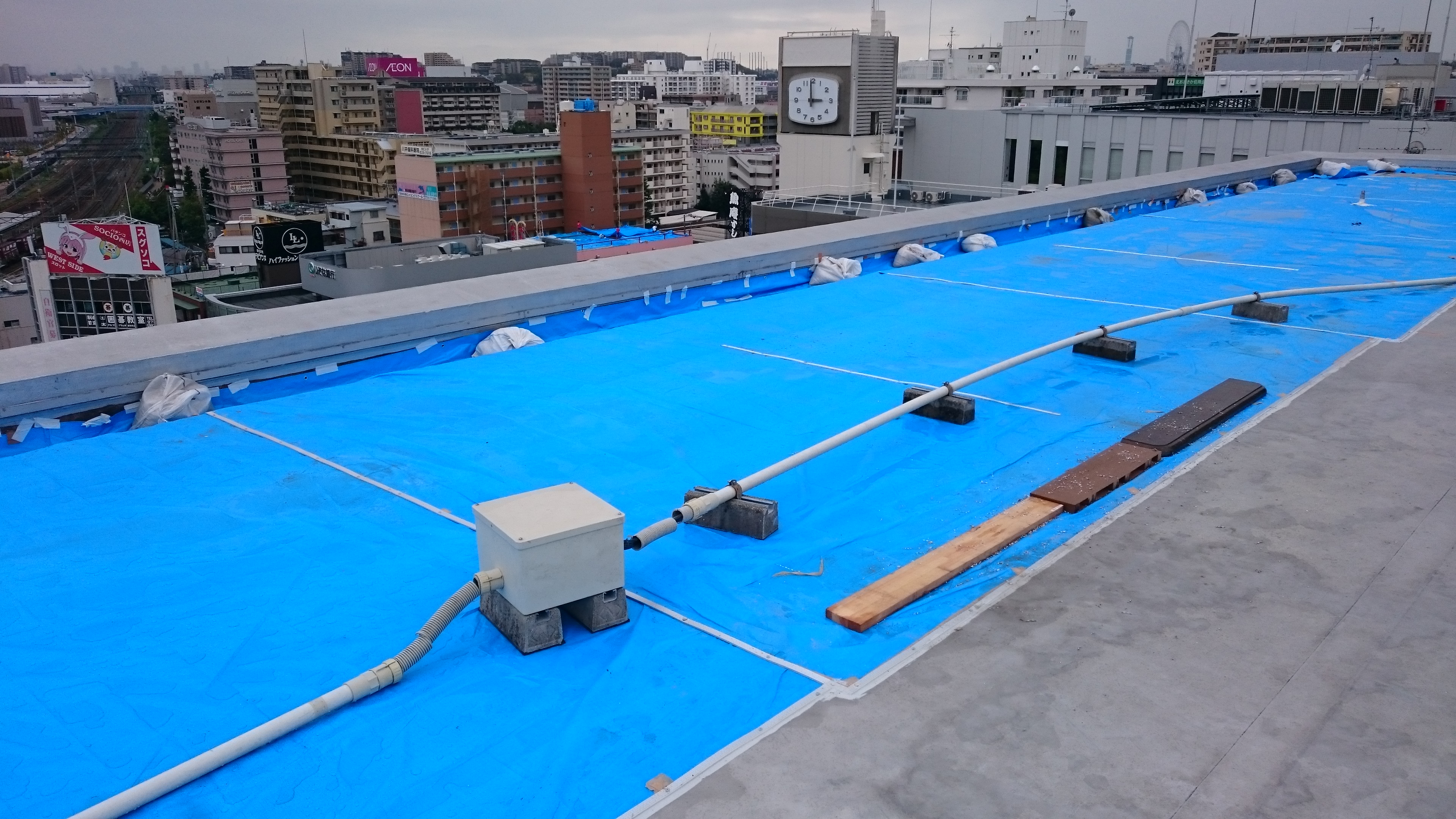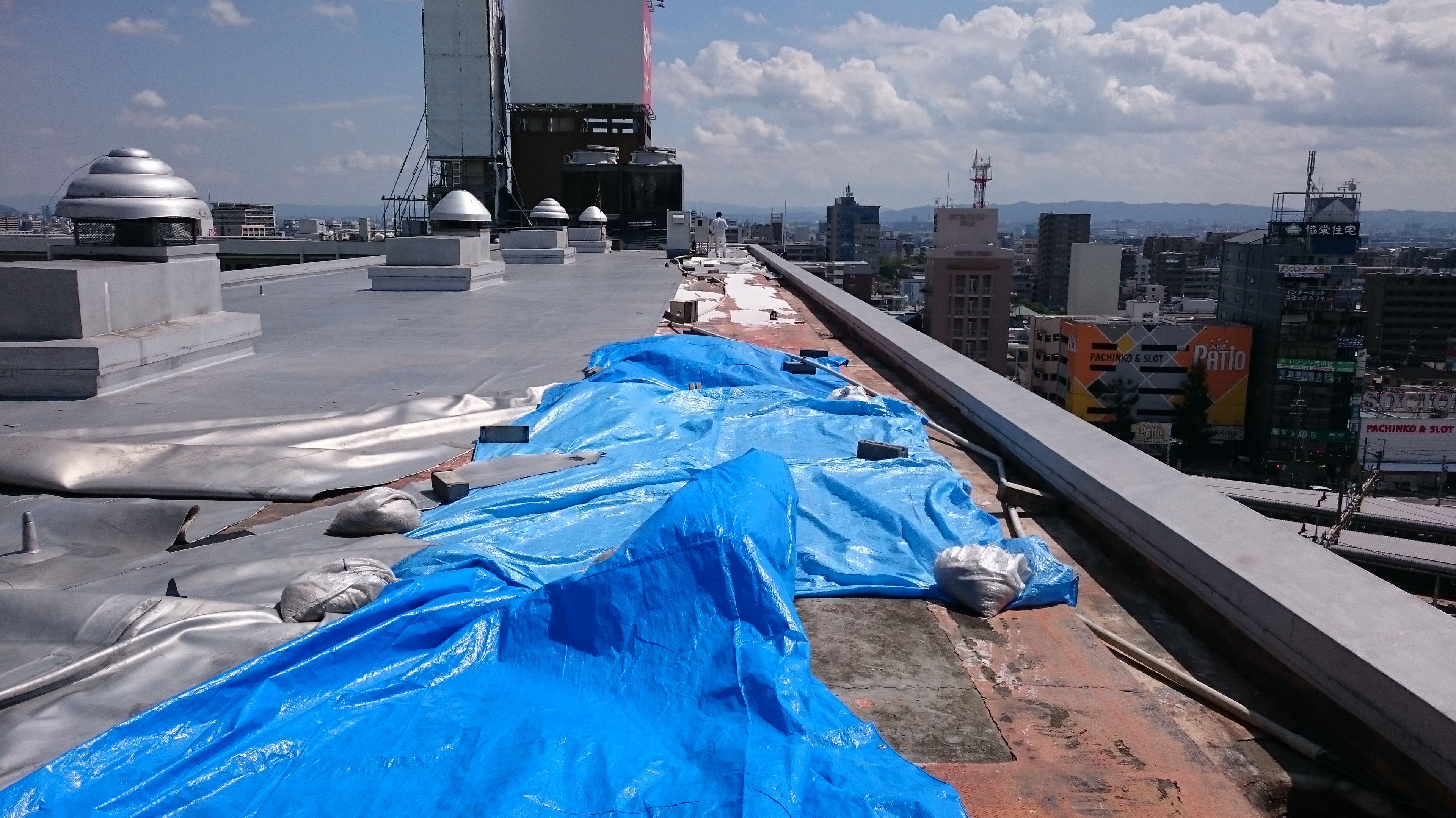 18/9/14仮補修前の養生補強(雨のため仮補修施工できないため)