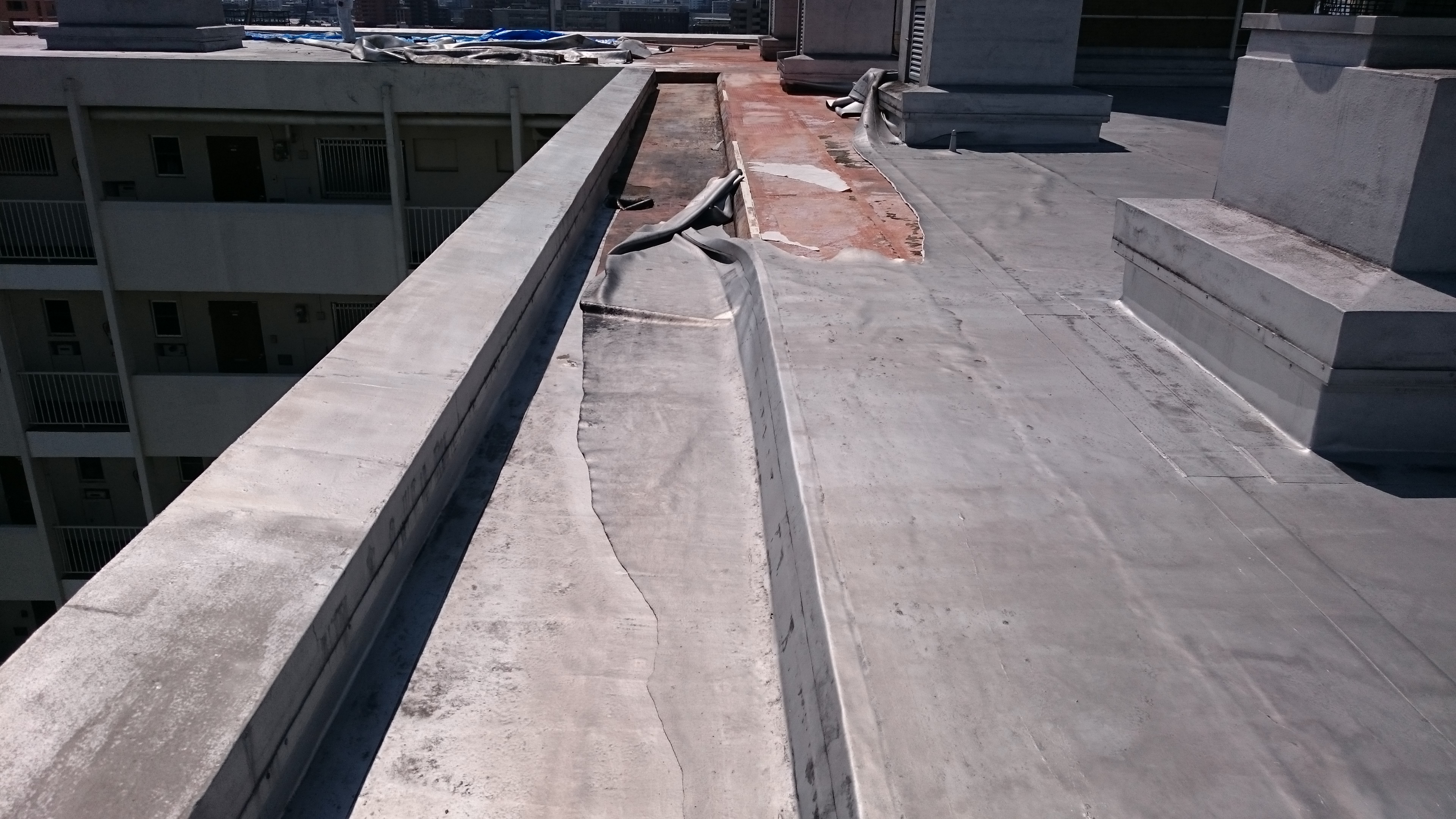 防水シート下のコンクリートスラブ亀裂
